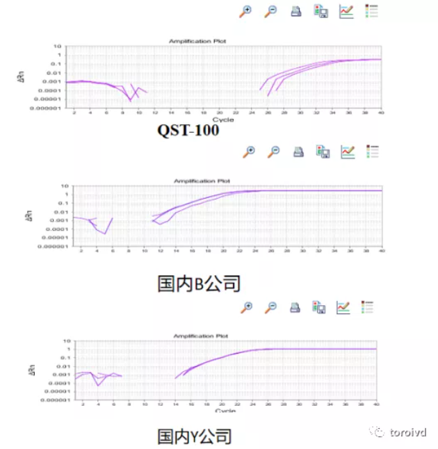 北大某課題組,所用試劑為QST-100和國內(nèi)B公司、Y公司,使用儀器為 ABI 7500.