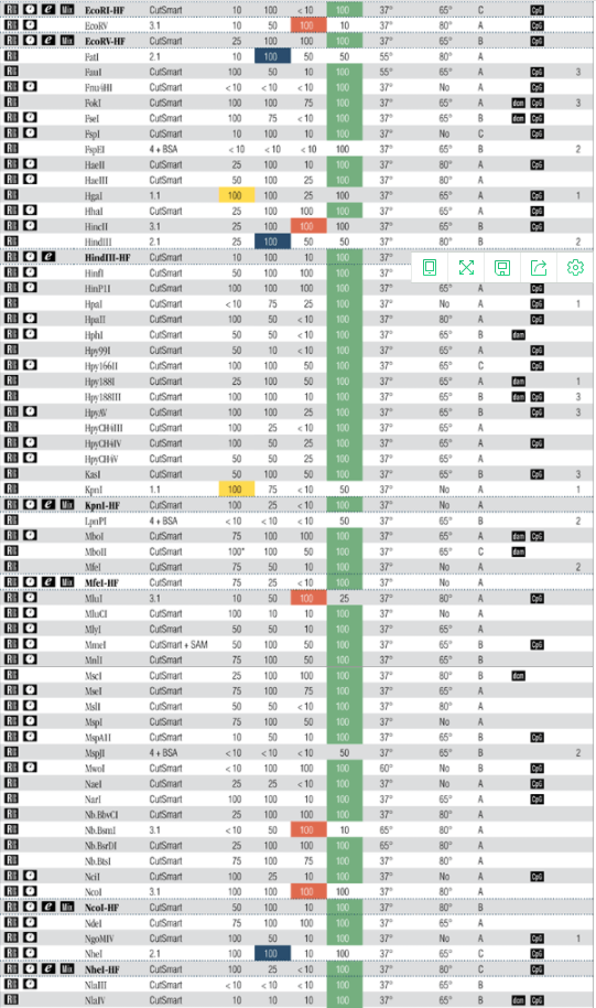 NEB 目前提供超過 200 種 CutSmart 內(nèi)切酶,這些內(nèi)切酶在 CutSmart 緩沖液中活性為 100%。這大大提高了內(nèi)切酶的效率、靈活性和簡便性,尤其是進(jìn)行雙酶切時。