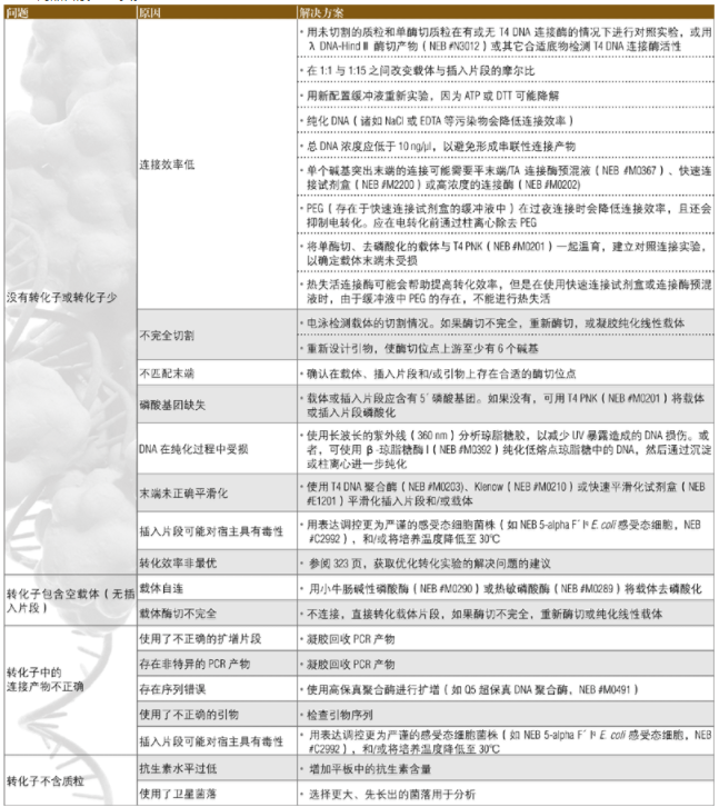 下面的指南可用于解決轉(zhuǎn)化過程中所出現(xiàn)的問題。關(guān)于設(shè)計(jì)與優(yōu)化克隆實(shí)驗(yàn)的其它建議見 2013﹒2014