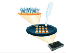 → 自動液體裝卸機(jī)在96孔板沒孔中打印20-50nL的點用來包被抗體