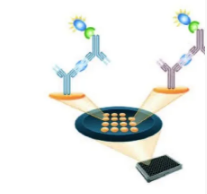 多因子檢測是一種基于96孔板夾心法酶聯(lián)免疫檢測技術(shù)。涉及到特異性針對各標(biāo)志物的包被抗體和檢測抗體。把樣本和校準(zhǔn)品加入到包被了抗體的96孔板點陣中,這樣就能在96孔板中固定住它們的位置。洗去未結(jié)合的蛋白,加入特異性生物素標(biāo)記的多因子抗體混合物。