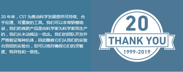 CST是一家由科學(xué)家創(chuàng)立的私營家族公司,致力于提供全球最高品質(zhì)的創(chuàng)新研究和診斷產(chǎn)品,加速生物學(xué)認(rèn)知以及實(shí)現(xiàn)個(gè)體化醫(yī)療。其高質(zhì)量的產(chǎn)品和專業(yè)的研發(fā)精神已被全球客戶推崇為“細(xì)胞信號(hào)研究的金標(biāo)準(zhǔn)”和‘最佳抗體。CST 的可持續(xù)發(fā)展計(jì)劃在生物制藥行業(yè)受到普遍認(rèn)可。